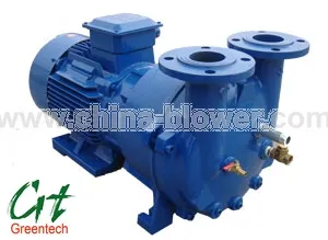 2BV series water ring vacuum pumps are suitable for pumping the gases and steam. Its suction pressure can reach 33mbar (ABS) (i. e. 97 % vacuum degree). If the transformer oil is used as the operating liquid, these pumps are called oil ring vacuum pump and the suction pressure can reach 6.7mbar (ABS) (i. e. 99 % vacuum degree). So the oil ring vacuum pumps can replace the reciprocated vacuum pumps completely. When the liquid ring vacuum pumps work under the condition near the limited vacuum for a long time, it is necessary to couple with the cavitation protection pipe in order to get rid of the screaming and protect the pump.
