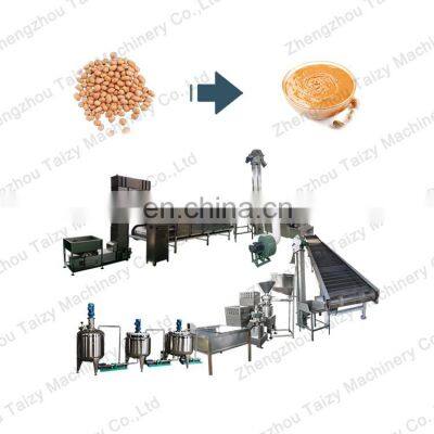 Product Description Introduction:This peanut butter production line is 500kg/h output, it mainly includes a hoist, peanut roasting machine, peeling machine, selection belt, storage silo, combination mill, sauce tank, paste pump, mixing tank, vacuum tank, storage tank.Product Application Machine parameters:NumberMachinesPower(KW)Size1Hoist1181600*750*30002Roasting machine1308500*1800*16003Hoist0.75900*750*30004peeling machine31900*800*13505Selection equipment0.756000*800*10006Hoist1.5900*750*38007Storage silo0.041200*1100*33008Colloid mill30*21400*1250*20009Sauce tank1.51300*1300*900(500L)10Mixing tank41000*1000*1900(500L)11Vacuum tank3+1.5900*900*2500(500L)12Paste pump1.5*31200*300*35013Storage tank3900*900*1200(500L) Machine display Workflow:1.Hoist: The material is transported between two machines with different heights through the elevator, which has high conveying efficiency and a large bearing range.2.Peanut roasting machine: Heat exchange is carried out by circulating fan and strong airflow so that the material is baked. After the roasting part is finished, there is also a cooling area to realize the integration of roasting and cooling.3.Peeling machine: This machine can achieve peanut peeling and breaking, the yield is bigger than another peeling machine.4.Selection equipment: People can pick out the mushy peanuts and the good peanuts will stay on the equipment.5.Storage silo: Peanuts will storage in the silo and then pass through the discharge port to the colloid mill.6.Colloid mill: Colloid mill is for peanut fine grinding, two colloid mill match, peanut butter is more viscous.7.Sauce tank: Peanut butter is entered into the sauce tank for short time storage.8.Mixing tank: The tank has a layer, which lind with water to cool the peanut butter.Detailed Images Factory Packaging & Shipping CustomersZhengzhou Taizy Machinery Co. Ltd. is a professional company in design and research, manufacturing, sales, and service for a variety of food machines, including large and medium-sized kitchen special equipment, fruit, and vegetable processing equipment, meat processing equipment, snack food equipment, fresh-keeping refrigeration equipment, soy products equipment, food packaging equipment and other related machines. Our company's machines are sold to Southeast Asia, UK, Germany, France, Italy, Netherlands, Russia, South Africa, Brazil, Canada, USA, Australia, New Zealand, Mozambique, Zambia, Ghana, Pakistan, Spain, Kazakhstan, India, Japan, Korea, United Arab Emirates, and more than 100 countries and regions. Contact