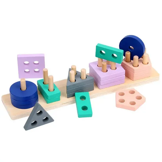 Building Blocks Wooden Toys Bricks Children Educational Sorting & Stacking Toys Toddle Colorful Toy Quadruple Column for Kids