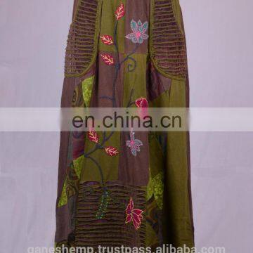 Simple in shape with beautiful razor cut design along with the patchwork to create a new version of long maxi dress which look is both stylish and popular among the people who wants to wear it to make a fashion statement. The color combination are quite different as it is either matched with light shade or dark but it does make it a beautiful bohemian maxi dress to wear it in any occassion. The light prints on the middle of black fabric with the patch work is very elegant and matchable at the same time. Normally, these dress are quite popular and handy when travelling, summer holidays and nice musical events. It can be paired with cool t-shirt, tank tops, v-neck or string tops and many more. Besides, it does make it a fashion dress even if you wear with long boots, ballarina flats or heels. As these long maxi dress are basically focus on providing the weightless feeling with exotic design and color works. Interestingly, the color and design range are so vivid that lure people to own one. These dress are extremely durable and made with hard work of Nepalese artisan. Unique, different and elegant at the same time, makes you confident, beutiful and stylish at the same time.