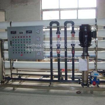 Xuecheng RO systems, uses tap water as raw water, after treated by pretreatment system including multi-media filter, activated carbon adsorption, resin softening (or adding scale inhibitor), then entering into RO membrane, filtering all particle, bacteria and organics(molecular weight >300Dalton, including pyrogen) and over 99% ionic substance, then produce pure water.