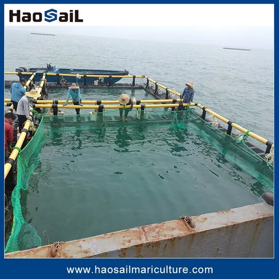 Question: What are the characteristics of the material used in HDPE fish cages? Answer: HDPE (High - Density Polyethylene) material features high strength, corrosion resistance, aging resistance, and abrasion resistance. It can be used for a long time in complex marine environments like seawater. It is not easily corroded by seawater and can resist the irradiation of ultraviolet rays, thus prolonging the service life of the fish cage. Question: How stable is the structure of HDPE fish cages? Answer: HDPE fish cages usually adopt a reasonable frame structure design. The HDPE pipes are connected into a stable frame through special connection methods. This structure can withstand the impact of external forces such as wind and waves to a certain extent, ensuring the stability of the fish cage in the marine environment. However, the specific stability is also related to factors such as the size of the fish cage, the installation method, and the environmental conditions of the sea area where it is located. Question: How should HDPE fish cages be maintained on a daily basis? Answer: Daily maintenance includes regularly checking whether the netting of the fish cage is damaged, and whether there are cracks or damage to the HDPE frame, such as algae and shellfish on the surface of the fish cage should be cleaned in a timely manner to ensure the normal exchange of water. At the same time, check whether the mooring system is firm to ensure the fixed position of the fish cage in the sea. In addition, pay attention to the operating conditions of aquaculture equipment such as aerators and feeders, and carry out maintenance and upkeep regularly. Question: What is the approximate service life of HDPE fish cages? Answer: Under normal use and reasonable maintenance, the service life of HDPE fish cages is generally 10 - 20 years. However, if the sea area environment is harsh, or if it is severely damaged by external forces during use and not properly maintained, its service life may be shortened. Question: How do square fish farming cages minimize environmental impact?