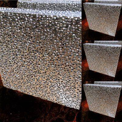 The spherical porous aluminum bubble is spherical and relatively regular. Small round holes are opened on the bulkhead to connect the spheres and go to 6 directions to avoid through holes, which is conducive to sound absorption, filtration and sound attenuation. In practical application, the ideal application effect can be obtained through the design and process control of the sphere size (diameter 3-13mm) connected wall hole size (diameter 0.5-4mm) hole wall thickness and plate thickness.