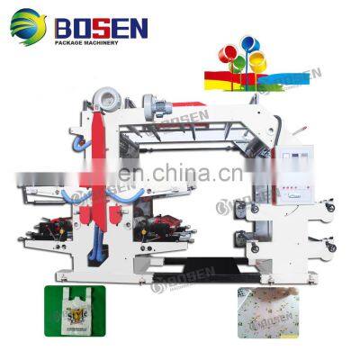 Machine Description4 Color Flexo Printing Machine, flexographic printing machines 4 colorMachine Name: Four Color Second Hand Bag Flexo Printing Machine LabelApplicationPrinting machine could be used for printing materials as following:1.Polyethylene, polyethylene plastic film printing 2.Bag(packing bag for food, supermarket handbag, vest bag and clothes bag printing 3.Roller paper and craft paper printing 4.Pp woven bag , pvc film, bopp film, printing 5.Laminated bag rolling printing 6.Non woven rolling printing 7.Rice bag pp woven printing8.Paper printing Model BS YT-4600 BS YT-4800 BS YT-41000 Max.Material Width(mm) 600 800 1000 Max.Printing width (mm) 560 760 960 Printing length 191-914mm, or customized Print colors 4 colors (also we have 1,2,4,6,8 colors for your choise ) Mechanical speed 80m/min 80m/min 80m/min Printing speed 60m/min 60m/min 60m/min Diameter of material Φ450 mm Total Power 11kw 13kw 14.5kw Plate Thickness (including two sides glue paper) 2.38mm, or customized Machine Weight 2500kg 3000kg 3500kgs Overall Dimensions 4200×1800×2400mm 4200x1800x2400mm 4200x1800x2400mm Working Voltage 380V 3-phase 50Hz, or customied such as 220V, 410V, 440VOption for getting higher quality machine 1. Automatic tension controller 2. Epc web guide equipment 3. Air shafts 4. Corona treatment 5.Blades6. Helical gear 7. Belt driving system 8. PLC touch screen computer control sysytemProduct SampleIf you are not sure it is your wanted machine, you could send us your sample for confirmation. We will carefully checking, then give you a best quotation.Work Shops1.Workers Are 10 years Average Working Experience.2.Main Parts Like Die Head And Screw And Air Ring, Machined In Cnc Equipment.3. Strong Body Welding Frame And Carefully Paint.4.Good Brand Used, Like SIEMENS, ABB, YASKAWA, DELTA, LS, OMRON, SCHNEIDER....CertificationsFilm blowing machine, printing machine, bag making machine ce certificated. If you need any certificate, pls contact with us before you ordering.Packing & DeliveryWe will pay attention to every parts packing with bubble film or stretch film or wooden case. Besides, we will load machines one by one carefully. And our delivery team is professional on all the machine inspection and certificates for your clearance custom.Our ServiceFAQYou May LikeFilm blowing machine more pls click here Slitting machine more pls click herePrinting machine more pls click hereBag making machine more pls click hereRecycle machine more pls click hereAll machine items pls click here