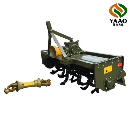 YAAO brand 1GKN series rotary tiller can be used with 18-100 hp tractor,It used for uncultivated and cultivated land on the rotary tillage or land preparation operations. It has the characteristics of dry tillage soil finely divided, hydro tillage mud pulp is sufficient,after plowing the surface leveling, weeds, stubble cover is good and high operating efficiency, which can achieve the combined effect of multiple operations with plows and harrows by one time. YAAO brand series rotary tiller has compact structure, reliable use and easy maintenance, it's a very popular agricultural machine by farmers. Detailed Photos
