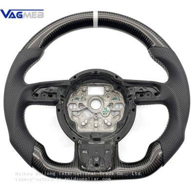 For Audi A6 C7 Perforated Leather Carbon Fiber White Stitching RS/S LOGO Steering Wheel Button Key Frame Assembly