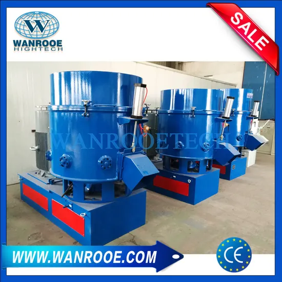 Putting the waste into machine pot body make the material be quickly cut by the high speed rotating turn the blade and the fixed blade shear ,then the material along the pot body wall by the knife dish centrifugal force function ,at the same time, the material turning up and down by paddle and from all around to move towards to the center of the pot body. The friction of material itself and friction of pot wall and blades produce much friction heat under the high speed, making the materials temperature rises to the half-plastic condition and connects to small lump. Before the materials will block, advanced preparation quantitative water will all spray to the material. The cold water touch the hot materials will gasify and take out the surface heat soon , making the surface of the materials cool quickly and avoid blocking, then after crushing effect between rotary blade and fixed blade to cut into particles(irregular size materials). During the crushing, Also may join the appropriate color pigments according to needs.