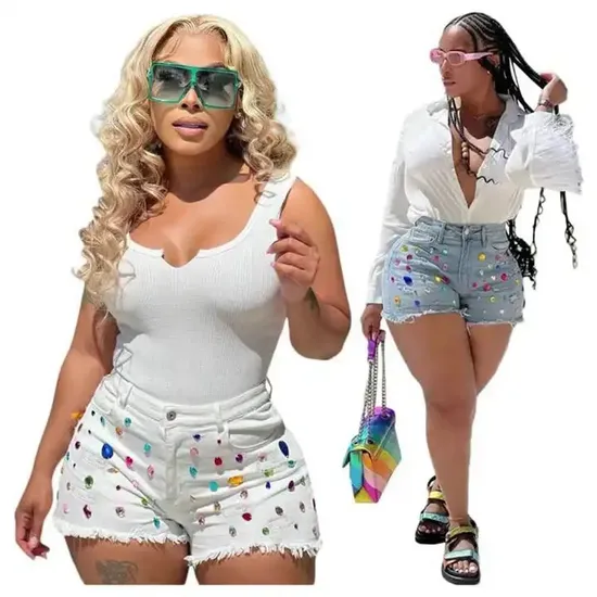 | 1. Product Name : | New Fashion Plus Size Colorful Crystal Denim Booty Shorts Sexy Summer Clothes Women Diamond Tassel Ripped Jeans ShortsNew Fashion Plus Size Colorful Crystal Denim Booty Shorts Sexy Summer Clothes Women Diamond Tassel Ripped Jeans Shorts More products>>> Price list>>> |