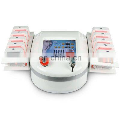 Good effective belly fat reducing body lipo laser slimming machine for beauty centreLipo laser/Lipolaser Theory:Lipo laser for fat reduction,use the 650nm soft laser to destroy the deep fat cells,broke the cell membrane,change the fat to triglyceride,then leave out the body,thanks to metabolism.The laser heat can Stimulate the subcutaneous dermal tissue collagen and elastic fibers hyperplasia,make the treated area skin tighten and elasticity Application:Intensive physicallipolysis to remove fatExcess fat cell meltedBody slimming,cellulite reductionSmooth fatigueRemove obstruction from channels and collateralsPromote and accelerate the body’s metabolism Specification: Item No:RL-I03 Material:ABS plastic Colour: grey Screen: 8 inches display screen Laser wavelength: 650nm Laser type: Diode laser Mumbers of treatment probe: 10(8 big probes and 2 small probes) Mumbers of diode laser: 162 diode lasers Timer: 30 minutes Max Output Frequency: 1Hz to 1000Hz adjustbale Cooling Requirements: Air cooling Working temperature: 10-40 degree NW.AND GW:12KGS/16KGS Input current: 240V/110V AC Size:45*45*42CM How Does It Work And What Is The Treatment ProcessLaser safety penetrates patients skin at a specific wavelength ( 650nm) targeted for Adipose ( Fat ) cells. Adipose cells are permeated releasing free fatty acids (FFA`s), water and glycerol. Together these compounds are known as Triglycerides. Triglycerides are normally released from fat cells when the body needs energy once released the glycerol and free fatty acids are used by the body as an energy source. Adipose cells `` shrink`` significantly resulting in inch loss for the patient. Exercise or a 10 minute Whole Body Vibration session is recommended immediately post LipoLaser treatments to burn FFA`s within the body and help stimulate the lymphatic system.5-10 minute Consultation with Technician about the LipoLaser and their goals and concerns. Paddles are then place onto body areas of a time that is discussed during consult.Treatment to be repeated is necessary. Results are shown during first treatment however; to gain maximum results 8-10 treatments depending on area will be neededProduct Details : Packaging & ShippingPayment and Shipping:PaymentT/T , West Union, MoneyGramShippingBy Express :DHL,UPS, FedEx, TNT, EMS ,ARAMEX By Air : Worldwide Air port By Sea Shipping time when we receive money ,we will send the machine in 3-4 work days.Our Services1.answer your enquiry in 24 working hours.2.Experienced staffs answer all your questions in professional and fluent English.3.Customized design is available. we can offer OEM&ODM for you .4.Exclusive and unique solution can be provided to our customer by your our well-trained and professional engineers and staffs.