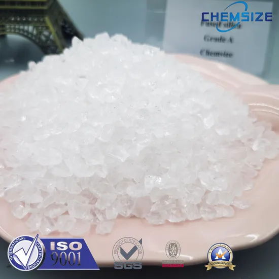 Any question,kindly contact us please! ChemSize is manufacturer of fused silica which is produced by melting high purity natural silica sand(quartz sand) at 2200ºC 12 hours. In the fusing process, the crystalline phase of silica sand transforms into amorphous phase. After cooling, Fused silica ingot is made out with high purity amorphous silicon oxide. Fused silica ingot is separated into 5-10cm lumps Grade A, Grade B and Grade C according to the black point size.