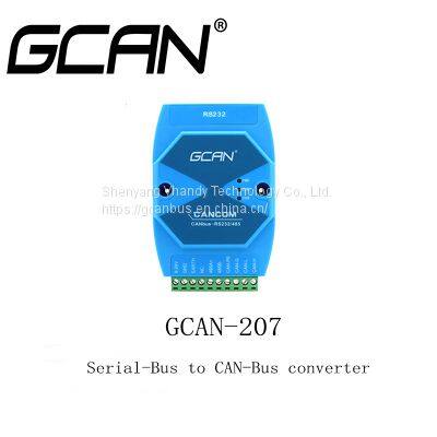 The GCAN-207 converter has integrated one standard CAN-Bus interface, one serial-Bus interface (RS232 or RS485). GCAN-207
