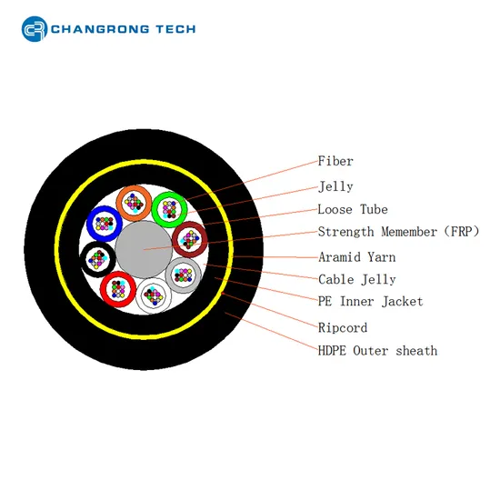 The fibers are positioned in a loose tube made of high modulus plastic and filled with gel. Tubes (and fillers) are stranded around the non-metallic strength member to form the cable core. An Aluminum tape(APL) is applied around the cable core, which is filled with the water-blocking compound. Then the cable core is covered with a PE inner jacket. After the corrugated steel tape(CST) is longitudinally armored over the inner jacket, the cable is completed with a PE outer jacket.