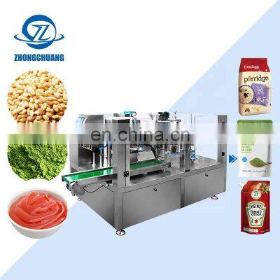 Product ParamentersItem NO.ZC-R200/250DimensionsL2460mm×W1830mm×H1460mmPacking Speed16-60 Bags/min (depending on products character and filling volume)Packing Bag SizeL: 100-350mmW : 60-200mm/80-250mmWeight1800KGAir Compressed air consemed≤0.6m³ / minAccuracy±1g (≤100g) / ± 1%( >100g) according to materialApplicationSuitable for liquid or semifluid products packing, such as beverages, juice, ketchup, bechamel etc.Working Procedure1.Bag feeding2.Coding3.Opening4.Filling A5.Filling B6.Heat sealing A7.Heat sealing B8.Forming and outputDescription1.According to customer demand for customized, to recommend the appropriate products to customers.2.Storage racks devices which can Satisfy the products short stop ,which can keep the production line work continuously.3.Good service,If you have any questions, you can communicate by telephone video.Recommend ProductsProducts DescriptionCompany ProfileFAQTrade patterns 1. Lead time: 15-20 working days after receive deposit2. MOQ: 1 set.3.30% deposit+ balance payment before delivery by T/T, western union, cash.4. Loading Port: Shantou or Shenzhen Port Export Process 1. We will prepare goods after receive deposit 2. We will send goods to your warehouse or shipping company in China.3. We will give you tracking number or Bill of loading when your goods is on the way 4. Finally your goods will arrive your address or shipping port Frequently Asked Questions Q: First time import, how can I believe that you would send products? A: We are verified company by Alibaba to make transaction success, we support and recommend you to pay money to us by Alibaba Trade Assurance.Q: How about the quality of your product?A: Our products manufactured strictly according to national and international standard-- We have ISO certification-- We take a test on every product before delivery.Q: How to choose the machine type for our bags? A: Pls support us the following information about the bag and the food. 1) Bag pattern (Bag samples or pictures would be appreciated.)2) Bag size 3) The filling weight or volume 4) Material of food: powder/liquid/paste/granular/massiveness Q: What aftersales service or any question about products?A: This machine enjoys 1 year warranty