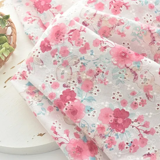 Embroidered fabric is a type of material that features exquisite patterns created through delicate embroidery techniques on various base fabrics such as silk, cotton, linen, and synthetic fibers. In modern times, embroidery work is mostly done by machines, and this fabric is widely used in clothing, home decoration, and the creation of artworks. Embroidery techniques are mainly divided into appliqué embroidery-which enhances the three-dimensional feel of the fabric-and openwork embroidery-this technique can create a transparent visual effect.Embroidery fabrics have a wide range of applications: delicate small-area embroidery is common in the cuffs, neckline and front chest of shirts, while large-area embroidery is mostly used for women's dresses, luxury evening dresses, traditional gowns, cheongsam, comfortable home clothes and pajamas. In addition, embroider fabric is also widely used in the household decoration such as bedding, tablecloth, curtain and cushion.Style and Coordination: Monochromatic embroidery complements Japanese-style dressing. Multicolored embroidery adds a unique charm to retro ethnic clothing. Bright-colored embroidery threads paired with cotton fabric patchwork are a popular trend in children's product design.