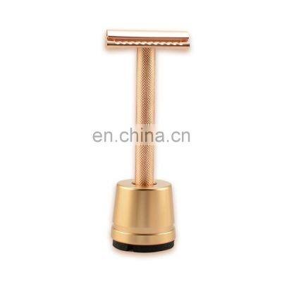 Men Personal Care Biodegradable Golden Brass Safety Razor Stand Set