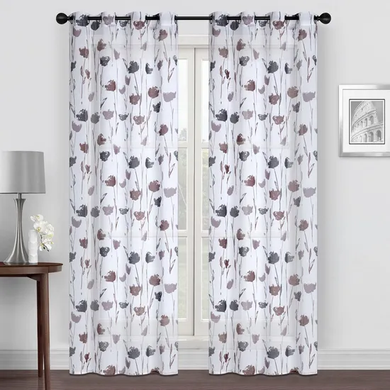 Tulip Design Printed Curtains Luxury Decoration Sheer Curtain