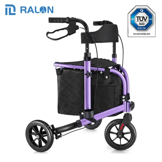 | Production Description | Aluminum rollator Fabric seat and backrest with shopping bag With crutch holder can be left and right interchange 8' EVA front wheels and 7' EVA rear wheel Multifunction brakes Handle height adjustable by knob Internal brake cable Folds into compact unit for easy storage or transport |