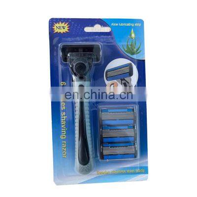Sharp 6 Blades Men Beard Razor High Quality Germany Blade Stainless Steel Razor Replaceable Blade Cartridge With Lubricant Strip