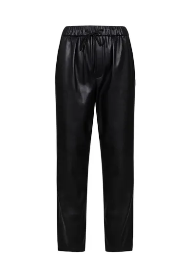 High Waist Design: The high waist cut creates a flattering silhouette, elongating the legs while providing support and comfort. The elastic waistband ensures a secure fit, making these pants ideal for all-day wear. PU Leather: Made from premium PU leather, these pants offer the chic look of genuine leather without the ethical concerns. The glossy finish of the PU pant adds a sleek, edgy touch, making them a statement piece in any wardrobe. Loose Fit: These loose pants provide ample freedom of movement while maintaining a stylish appearance. The relaxed fit ensures comfort while keeping you on trend with the latest fashion. Elastic Waistband with Bow Detail: The waistband is crafted a cute bow detail. This adds a playful yet sophisticated touch, with the bow acting as both a functional and stylish accent. Versatile Street Wear: Ideal for street wear, these women's pants can be paired with anything from a casual tee to a trendy jacket. Whether you're dressing them up with heels or keeping it casual with sneakers, they're a versatile option for various looks. Stylish & Comfortable: Combining the durability and texture of leather pants with the comfort of an elastic waistband, these pants offer a unique balance of style and comfort. They are perfect for those who want to stand out while feeling at ease in their outfit. These PU leather pants are the perfect addition to your wardrobe, offering an elevated take on casual wear with a high-waisted design, elastic waistband, and chic bow detailing. They're a must-have for anyone looking to add a little edge and sophistication to their streetwear collection.