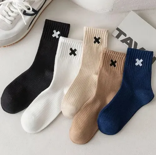 Product Description Spring Autumn Winter Sports Mid-tube Short Crew Socks Cotton X Letter Embroidery