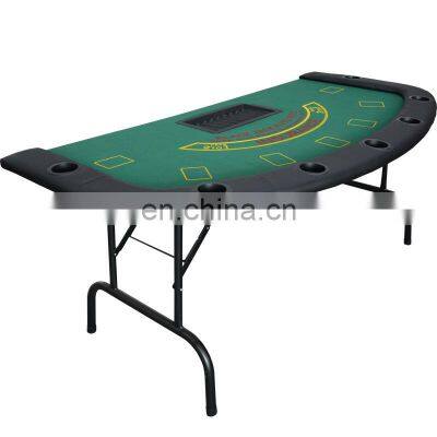 Related ProductProduct DescriptionUsage - padded rails let players comfortably rest their forearms on the table during play. Built-in cup holders keep sweaty glasses and tumblers off of the felt surface without depriving guests of refreshment.easy-to-clean faux leather.you can use this versatile table for all of your favorite card and board games.Dimensions - 183 x 92 x 75 cm.Design - 7 players position with green felt surface. A sturdy reinforced frame of leather. This durable table folds in half for easy storage under your bed or loading into your car.Product DetailsProduct Name Professional Poker TableMaterial Sublimation Fleece + Leather + MetalColor GreenSize 183 x 92 x 75 cmWeight 21 kgProduct ShowsCompany ProfileOur ServiceExpress Delivery by FedEx, DHL, TNT, UPS, EMS Shipment Weight1 - 45 kg45 - 200 kgor MoreMode of ShipmentBy CourierBy Courier / AirBy Air / SeaLead Time5 - 7 days5 - 7 days5 - 7 days30 days to Europe / USADoor to door delivery carrier includes: DHL, Fedex, UPS, TNT, EMS etc.A full range of sea and air logistics to provide you with the most convenientlogistics experience, rapid response to save your time.Payment TermsTrade AssurancePayPal / Secured PaymentWestern UnionBank TransferFor any amount< $ 5000For any amountFor any amountFrequently Asked QuestionsQ: Why choose us?• Lowest factory price with good quality• Low Minimum Order Quantity • Free sample to check quality• We also accept trade assurance order to protect buyerQ: What kind of method do you use to put customized logo?• Silk screen printing • Laser engraving • Etching• Stamping• Embossing / Debossing and any other mode you wantQ: How to save sample cost?• Stocked item, no MOQ. Small batch production also welcomedQ: How to get a sample?• We can supply free sample of standard product, you just need to bear the shipping cost.• For customized sample, please contact us for sample cost.Q: What is sample time and production?• Existing sample: 2-3 days• Customized sample: 7-10 days• Mass Production Time: 25-30 daysQ: What is your shipment term?• We can send your shipment by Sea / Air / Door to door courier, depends on the shipment size we can give you suggestions.• As we are sending shipments frequently by courier , we are getting good discount from the carrier, and we will transfer the benefit to you.Q: What is your term of payment?• We are quite flexible about payment, we accept T/T, PayPal, Western Union, Trade Assurance, etc.Contact DetailsPhone Number0086-512-68080479 (Ext No.602)Email IDsales@esunrix.comWhatsApp+86 13606131434Skypesunrise-sales3WeChatesunrix