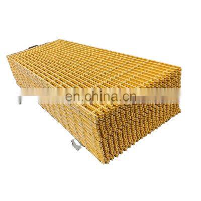 Product DescriptionIndustrial floor grating plastic grating walkway pultruded frp grating During the pultrusion process, the raw material are pulled through a heated steel forming die using a continuous pulling device. when the reinforcements are saturated with the resin mixture in the resin bath and the wetted reinforcement package is wrapped ina surfacing veil. the completed package then goes into premolding stage that roughly forms the package into the appropriate shape to enter the heated trimming die for curing. the trimming die is the exact shape of the final part desired. upon exiting the trimming die, the part is over 90% processing and solid. Cutting in accordance with requirements of the length, the entire process is completed. FRP Grating advantages1. Corrosion resistant2. High strength & light weight3. Long service life4. Fire retardant5. Impact resistant6. Nonconductive and thermal insulation7. Non-magnetic electromagnetic transparency8. Dimensional stability, Bright color9. Low-maintenance Pultruded frp grating pictures showSpecificationType Height(mm)Top edge width (mm)Space between (mm)Clearance width(mm)Open area(%)Estimated weight kg/m2I-4010251525104017.8I-5010251530155015.1I-6010A251538236012.2I-6010B25819.811.86013.7I-4015381525104022I-5015381530155019.1I-6015381538236016.2I-4012301525104019.1I-5012301530155016.1I-6012301538236013.1I-40125321525104028.5I-50125321530155024.2I-60125321538236020.1I-4020501525104028.5I-5020501530155024.2I-6020501538236020.1Details ImagesFiberglass grating manufacturer FRP/GRP composite pultruded and molded gratings show After-sales service1.Provide install video if necessary and other install documents2.Quality guarantee is 1 year. 3.If it was proved due to the quality problem,we will bear all cost for replace during quality guarantee time.Packing&ShippingRelated Products1, high quanlity and best price Our company is Professional manufacturer , cheap price and guaranteed quality. we can do the test as your required , such as SGS, ISO and so on. 2, Accept customized, Our company accept customized, if our catalog don't the size you need, is doesn't matter, we can according your required to produce it. 3, Best serviceAnswering emails or solving questions timely. Delivery and update information on time. Trust, good quality and service are the basic of long term business. I think you will satisfy with our service. Give us your PO, let us cooperation for a long time.FAQ