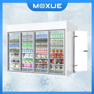 Check out MOXUE's walk-in showcase coldroom that allows you to display your products while also storing them efficiently! This coldroom combines both functions, solving space limitations with ease.