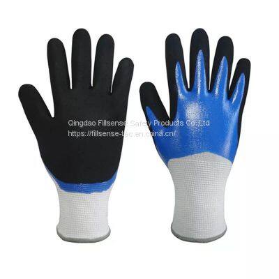 15Gauge Polyester Liner Nitrile Fully and Sandy Palm Coated Gloves PNFM-07