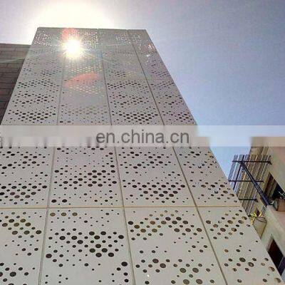 Perforated metal facade round hole perforated mesh cladding Product DescriptionProduct Description Product Name Perforated Mesh Metal SheetsMaterialAluminum, stainless sheet, black steel, galvanized steel, copper/brass, etc.Hole ShapeRound, Square, Hexagonal, Cross, Triangular, Oblong, etc.Arrangement of HolesStraight; Side Stagger; End StaggerThickness Hole Diameters (to make sure perfect holes)PitchCustomized by buyerSurface Treatment Powder coating, PVDF Coating, Galvanization, Anodizing, etc. Applications- Facade cladding- Curtain Wall- Architectural decoration- Ceiling- Noise Barriers- Wind dust Fence- Walkways and staircases- Conveyor Belt- Chair/Desk- Filter Screens- Window- Ramps- Gantries- Filtration- Balustrades- Protecting net for carPacking Methods- Packing in rolls with carton. - Packing in pieces with wooden/steel pallet. Quality ControlISO Certicificate; SGS CerticificateAfter-sale ServiceProduct test report, online follow up. Functions You can find the perforated metal products working everywhere when you open your eyes.At home: lampshade, floor drain, ventilation screen, air container inside, Kitchen ventilator etc. On the way: building facade, bus seat, machine cover, etc.The extensive applications helps the perforated metal mesh sold very well and all over the world.Facade CladdingBuilding DecorativeBarbecue Grill Ceiling/Curtain WallFurniture like Chair/DeskSecurity FencingMicro Battery Mesh Cages for PoultryBalustradesFilter ScreensWalkway & StairsPlaster or Stucco MeshIn addition to the above applications, there are many others. If you have other ideas, pls contact us. Company Information Anping Dongjie Wire Mesh Products Factory is founded in 1996 with over 5000sqm areas. We have more than 100 professional workers and 4 professional workshops: expanded metal mesh workshop, perforated workshop, stamping wire mesh products workshop ,molds made and deep-processing workshop. Certifications