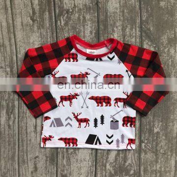 xmas christmas thanksgiving day deer red white plaids kids cotton tshirt baby ruffle sleeves white tops baby animal shirts