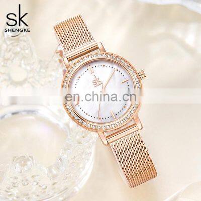Model NumberK0163LBrandSHENGKE(SK)StlyeLady Luxury WatchMovement SEIKO (PC21)Case MaterialAlloyDiameter/Thickness30mm/6.5mmBand MaterialStainless Steel MeshBand Width12mmWaterproof3ATMBattery Life18 Months1. What's your MOQ? Can I mix styles and colors?A: Take our brand logo watches for wholesale is no MOQ limited , but if customized your logo (OEM ), the MOQ is :Alloy case watch 300pcs/style,can mix 2~3 colors ,stainless steel case watch 500pcs/per style .can mix 3~5 colors 2. Can we print our own logo?A: Yes,we can print your logo or design on the band, dial, buckle, back, case and other place, usually the color of the logo is one color.3.What about the warranty?A: 12 months movement warranty, and we are very confident with our products, and we will pack it very well, so usually you will receive your goods in good condition. But to avoid any subsequent trouble regarding quality issue, we suggest you check the watches once you receive them, and let us know if there is any damaged ones, so that we can deal with it accordingly.4.Do you offer Drop shipping (Blind shipping )?Yes , we offer Drop shipping/Blind shipping,we haven enough experience in drop shipping ,every day we have many watches to send out many countries for drop shipping.5. Do you do custom watch boxes?Yes, we do custom watch boxes. We can follow your requirement to make the boxes ,or you can select our boxes with your logo.6. What movement do you usually use in your watches?We usually use Japanese movement ,Swiss movement, and Chinese movement, for example Seiko,Citizen,Miyota,Ronda ,Kingstar we use most.7.What is your packaging?1.Not over 5 pcs order ,each watch will be put into a bubble bag then packaging well into a safe white bag(as below picture)2.Over 20 pcs order ,each watch will be put into a opp bag, then put into a bubble bag, after that all total put into a white box.(as below picture)For OEM/ ODM Products packaging:Normal packaging 1.Each piece will be put into a poly bag;2.20 pieces into a white box;3.10 white boxes into a 39*30*33cm carton; Special packaging: As per your request. Note: Only Normal packaging service is free.