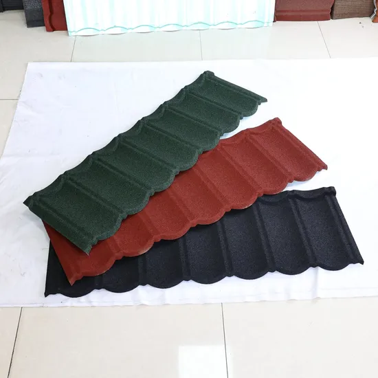 1340mmx420mm Metro Stone Coated metal Roofing Tile Stone coated steel roofing tiles is based on Al-Zn steel. The surface and back protective films, together with the alloy composed of Aluminum and Zinc, with natural stone, provides the usage of a long time span, which no less than 50 years. This kind of tiles could be widely used at all kinds of buildings, such as residences, hotels, villas, horticultural structures, etc