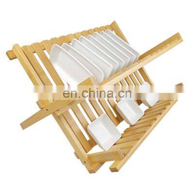 Amazon Hot Sales Kitchen Dish Rack Bamboo Plate Drying Rack