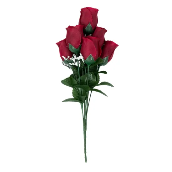 Wholesale Decoration Burgundy Premium Silk Rose Bud Bouquets Arificial Flower