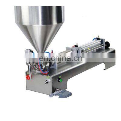 Product Description Toothpaste Lotion Ketchup Pepper Sauce Filling Machine/Paste filling machine1. The machine is driven by compressed air control, so it is especially suitable for use in explosion-proof and humid environments, with high safety;2, due to pneumatic control, and the use of mechanical positioning, so high filling accuracy, accuracy can be controlled at ± 0.5%;3, the use of screw, counter, so that the amount of filling adjustment accuracy, and can be intuitively embodied in digital form;4,Professional filling of rotary valve with small particles of sauce material;5, the machine is 304 stainless steel, the material contact parts are made of 304/316 stainless steel, in line with GMP requirements;6, the filling head with anti-drawing, anti-drip device, filling mouth with two sizes;7, filling speed, can be filled 30 times per minute, with 500ml of water as an example, the filling accuracy is ± 0.5%.Technical Parameters: ModelHX-500NHX-1000NHX-3000NHX-5000NFilling speed10-35n/min (taking water as an example)Filling range50-500ml100-1000ml300-3000ml500-5000mlAir pressure0.4~0.6mpaFilling error±0.5%Dimensions950(L) × 280(W) ×300(H)mm1150(L) ×280(W) ×300(H)mm1130(L) ×350(W) ×358(H)mm1330(L) ×350(W) ×368(H)mmweight22Kg25Kg38Kg51 Kg Picture shows: