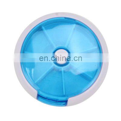 2. PRESS TO ROTATE: Press the central button to rotate the small cells. Total 7 compartments for your whole week medication plan.