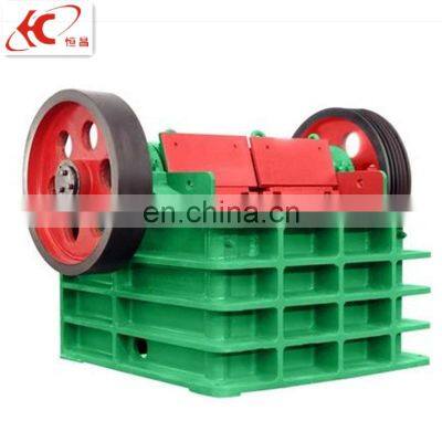 Introduction of 2021 new PE series rock stone jaw crusher (Rock stone Jaw crusher, referred to as smashing, which has a typical new type of PE), has the characteristics of large crushing ratio, uniform product size, simple structure, reliable work, easy maintenance and economical operation. Jaw crusher is widely used in mining, smelting, building materials, roads, railways, water conservancy and chemical industries, and crushing various materials with a compressive strength of less than 320 MPa. It is the primary equipment for primary crushing. Structure of 2021 new PE series rock stone jaw crusher The jaw crusher is mainly composed of a machine base (chassis), an eccentric shaft, a pulley, a rocker, a connecting rod, an adjusting mechanism and a blocking spring. Advantage of 2021 new PE series rock stone jaw crusher Working principle of 2021 new PE series rock stone jaw crusher The working mode of the series of crushers is the curved extrusion type. The working principle is as follows: The motor drives the V-belt to transfer the power to the pulley, and the pulley drives the eccentric shaft to make the moving jaw (the surface of the moving jaw is equipped with a seesaw). The movement of the upper part around the eccentric shaft causes the whole movement to move up and down. When the moving jaw rises, the angle between the bracket and the moving jaw becomes larger, thereby pushing the movable jaw to approach the fixed jaw, and at the same time the material is Crushed or chopped (sheared), to achieve the purpose of crushing; when the moving down, the angle between the bracket and the moving jaw becomes smaller, and the moving jaw is separated from the fixed jaw by the action of the lever and the spring. The broken material is discharged from the lower opening of the crushing chamber. As the motor rotates continuously, the crushing maneuvering cycle motion crushes and excretes the material to achieve mass production. When the jaw crusher is working, the movable jaws make periodic reciprocating motions to the fixed jaws, sometimes approaching and sometimes leaving.When approaching, the material is crushed, split, and impacted between the jaws; when it is removed, the broken material is discharged from the discharge opening by gravity.Flywheels and eccentrically supported bearings often use spherical roller bearings, which must withstand large shock loads, abrasive sewage, and high temperaturesModelMax. Input Size(mm)Adjustment Range(mm)Capacity(t/h)Shaft Speed(r/min)Motor Power(kw)Overall Dimensions(mm)Weight(kg)PE150*25012510-401-32855.5922*745*933750PE200*30016515-502-82657.51056*1100*11201100PE250*40021020-605-20300151108*1142*13922900PE400*60034040-9025-64280301700*1732*16536900PE500*75042550-10034-68275552050*1860*214510500PE600*90048065-16056-192250752792*2168*225017500PE750*106063080-140110-242250904180*2560*307027000PE900*1200750100-200158-2562501105200*2900*350050000PEX150*75012510-408-35300151220*1480*11803300PEX250*100021015-5015-50300301580*1992*13807100PEX250*120021015-5020-60300451730*2192*13808700PEX300*130025020-9020-90300751930*2400*174711600 Q: For providing you the suitable quotation we need to know the following information: ?A:1. No, the drape is a one-time use only and destroyed after use.2. What is the capacity per hour you required 3. What is the maximum input size of the raw material ?4. What is the output size and application for the final product? Once we get your answers, I can provide you the best quotation immediately.Remarks: The price will depend on different models.Q: What about Warranty of the products ?A:Gongyi hengchang machinary grants our customers a twelve-month-period warranty from the date of delivery for machines exported from us. During the warranty period, in case any defect of material or workmanship occurred with spare parts in normal operation, we will at our discretion replace or repair the defective parts freely.Q: The reason you choose Gongyi hengchang Machinery:A:1. Professional manufacturer of supplying mining crushing equipment, construction equipment, Ore beneficiation equipment and mining dryers.2. Experienced and professional R&D team and manufacturing team;3.Professional sales team consisted of dedicated, dynamic and innovative people with international version.4. Professional logistics service ensuring safety and timely delivery of products all over the world through ocean, airline, road and railway.Contact us for more details about price, packing, shipping and discount.