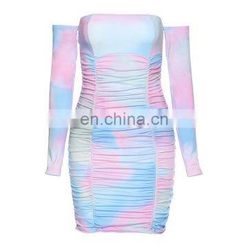 LAITE D2128 women tie dye printed dresses ladies one-shoulder club party dresses women sexy dresses