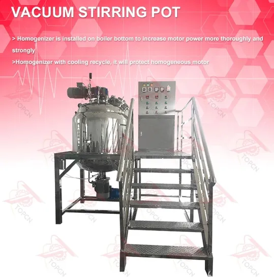 Vacuum emulsifying machine, high shear homogenizer, cosmetic cream mixer means the material in a vacuum state, the use of high-shear emulsifier efficient, rapid and evenly distributed one phase or multiple phase to another phase, and each phase under normal circumstances (such as oil and water phase) are mutually exclusive.