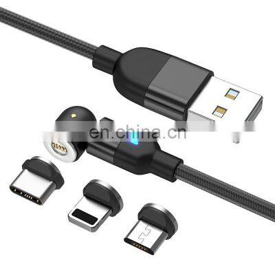 Wholesale 540 Rotation 3 In 1 Usb Data Cable Magnet Mobile Phone Magnetic 3A Fast Charging Cable for phone