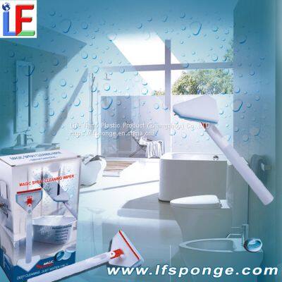Magic Spray cleaning wiper is a new type of bathroom kit that integrates water spray, cleaning and wiping.The head use melamine sponge with strong cleaning ability, it can quickly cleans stubborn dirt, especially soap scum from shower gels and shampoos in the bathroom, remove stains and stagnat water, it is a good helper for you to clean work.