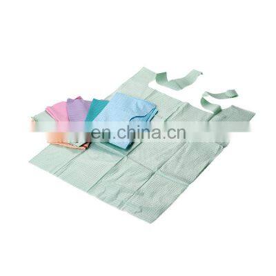 Products DescriptionColorful 3-Ply Patient Surgical Consumable Medical Disposable Dental BibsItem: Disposable BibsMaterial: 2 X 20g Paper Laminated 20g PE FilmSize: 33 X 46cm, 33 X 66cm or 40 X 45cmColor: White /green / Pinkue/green/purplePacking: 125pcs/bag, 4bags/ctn, 37 X 34.5 X 26.5cmG.W.: 4.5kg, N.W.: 4.2kgRelated ProductsCompany InformationCertificationsExhibitionFAQ1.Can I get some samples?Yes2.How about the delivery time?1).For Samply order will be prepared within 5 days.2).For bulk order.normally,it needs 20-40 days,it's based on you QTY.3.Can you do custom-made?OEM,ODM welcomed.1).Silk print your logo on the product.2).Customized colorbox.3).Design and produce based on your idea and draft.4.How about the payment?1).Amount less than $1000.You can pay for the order by Paypal,western Union.2).Amount more than $1000.You can pay for the order by T/T,LC.We support Trade Assurance - A free service that protects your orders from payment to delivery,it can make your funds safer.5.How about the shipping?1).For sample order,it can sent by express company like UPS,Fedex,TNT ect.We have strong cooperation with them and if you have express collected account,you will no need to pay us.2).For bulk order,it would sent by sea.We have our cooperation forwarder and you also can use your OWN forwarder.