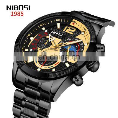 SpecificationitemvalueDial Window Material TypeCoated GlassDial Diameter47Case ShapeRoundBand Width22Band Length20Clasp TypePush Button Hidden ClaspWater Resistance Depth3BARCase Thickness14.5Brand NameNIBOSIModel Number2397TypeCHARM, Fashion, Luxury, sport, BusinessFeatureAuto Date, chronograph, Day/Date, Water Resistant, Small three needleMaterialstainless steelAge2021Band Material Typestainless steelCase MaterialALLOYUserMenMovement BrandCHINAMovementQuartz MovementProduct nameNIBOSI Men's Watch Men's Automatic Date WatchLogoSupport OEMColor5 ColorsWater resistant3 ATM WaterproofCase Thickness14.5mmWeight143gProducts DescriptionCustomer ReviewsCompany InformationShenzhen South America Watch Co., Ltd is a top professional watch manufacturer in SHENZHENCHINA.In factory there are 100 watch skilled workers, 20 QC, 2 designers, 10 sales, 2purchasers,and few administrators. Mainly product is watch,such as quartz watch, automaticwatch, men's watch, lady watch made from stainless steel or alloy. the requires depend on you.Our NIBOSI branded is registered in Swiss, US and China. And our own brand NIBOSI watches forwholesale annual. Very good competitive price. Delivered Duty Paid drop shipping service.Packing & DeliveryCustomize package as per your request:Packing standardFree simple packing: pc/opp bag, 20 bags/box, 10 boxes/ctnCustomize gift packing: 1 piece in one box with pillow protect.According to client's request.Shipping cost can be included into cost:We can ship via DHL, FedEx, UPS, EMS, TNT, Aramex E-packet etc.Our Service24 Hours Offer Product ConsultingAccept OEM order, custom your LOGO to create your own brand.Variety watches styles in STOCKS for you choose to WHOLESALE.If you are a online shop, we can offer you ONE STOP DROP SHIPPING service.FAQ1. Q:What's your best price for this watch? A: We will quote you best price according to your quantity&requirement .2. Q:What's your MOQ? Can I mix styles and colors?A: MOQ is 300pcs per model. you can mix colors in one styles ;but for stocks , you can mix styles and colors3. Q:What's the delivery time?A: If stocked , we can ship it within 3 days after receiving your payment. For custom order, the production time is 35-40 days after all details confirmed.4. Q:What's your packing?A:Our usual packing for watch is opp bag, we can also supply you with different kinds of watch box.5. Q:Can we custom our own logo on the watch?A: Yes, you can. we support logo printed and logo stamped.6. Q:What about the warranty?A: China movement warranty is 1 year, japan movement warranty 3 years, swiss movement warranty 5 years.7. Q:What payment term?To avoid any subsequent trouble regarding quality issue, we suggest that you check the watches once you receive them. If there isany transport damaged or quality issue, don't forget take the detailed pictures and contact us as soon as possible,we willproperly deal with it, make sure your loss to reduce to the smallest .We will try our best to provide the best service for you and keep a good business relationship.Thank you for your inquiry inadvance.