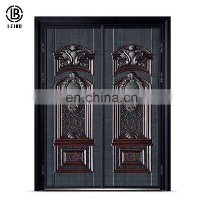 Product SpecificationBody Size0.6mm/0.8mm/1.0mm galvanized plateFalse Frame1.5mm/1.8mm Galvanized SteelFrame1.5mm/1.8mm Galvanized SteelPASSAGE MEASURES1 LEAF DOOR: 90X210 80X2102 LEAF DOORS: 120X210 110X210OUTSIDE SUBFRAME MEASURES1 LEAF DOOR: 103X217 93X217 2 LEAF DOORS: 133X217 123X217OUTSIDE PANELMelamine / Molded Veneer/PVC Steel PannelINSIDE PANELMelamine / Molded Veneer/PVC Steel PannelInsulationWith Expanded Polyurethane.Hinge BoltsOn the lateral side made of 3 mm thick steel plate in order to prevent the door's disruption.LockEuropean cylinder lock protected by anti-shock and steel defender. 1 temporary and 5 final keys.Special Anti-drill PlateBehind each security lock for added protection.Opening LimiterAlso called security block. Easy to use from the inside by a doorknob in the upper side of the door.Adjustable Draft ExcluderAutomatic drop draft- excluder ensure hermetic seal against air and light.PeepholeWide-angle lens.ACCESSORIES20 years warranty internal and external PVD accessoriesCERTIFICATE EN1627ENERGY SAVING CERTIFICATESU Value: 1, 7 W/m² KAcoustics: 34 dbWatertightness: Class 4AWindtightness: Class 5CAirtightness: Class 3Company InformationAbout UsFoshan Leibo in 1998 and developed trade business in 2005, Foshan Leibo Cunstrction Material Factory has experience inmanufacturer and exporter more than 12 years. We are specialized in the development and production of aluminium doors&windows,aluminum balcony&handrails, steel door , stainless steel door , iron sheet etc.All of our products comply with internationalquality standards and are greatly appreciated in different markets throughout the world.Our CustomerProduct CertificationProject CooperationPackingFAQQ:What is your main production ?A: We are major in making the security doors products.Such as Bulletproof Doors,Copper Doors,Security Steel Doors,etc.Q: Is your company the factory or trading company ?A: We do have our own production line of quality security doors, at the same time,with more than 10 years experience of exporting doors to all over the world, wecombine difference cooperated factories as an union to provide one-stop purchaseservice of all kinds of doors.Q: How is your packing ? A: We use different methods of packing depends on different doors and our customers'demand, and we also accept OEM of customers' brands. Usually for most of the productswe use 5- layers carton package. Q:How is your company products quality ?A:Our company products all produced in factory,by three times QC check.During produce,after produce and before pacakge .Just believe in us.We will do good quality products for you .