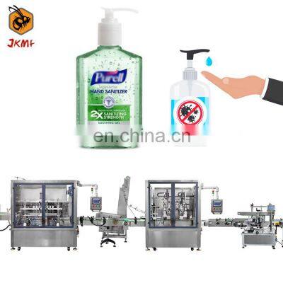 High Speed Automatic Alcohol Gel Disinfectant Bottle Filling Machine Hand Sanitizer Bottle Filling Capping MachineProducts DescriptionThe full automatic quantitative liquid filling line is designed for saving time on adjusting and testing machine,it can filling liquid or paste accurately by entering a certain filling volume.The PLC control method makes it easy to operate,the high speed working efficiency is ideal for medium or large scale production.It can work with the automatic capping machine and labeling machine to form a complete production line and realize high speed packaging work.Application:This machine is suitable for filling liquid and paste like juice,beverage,drinks,milk,makeup remover etc.It is widely used in drinks,cosmetics,daily chemical and pharmaceutical industries.Machine Features1.Touch screen operation interface. 2.Up and down movement type filling, effectively prevent the foam from being produced, easy to take apart and wash. 3.The filling accuracy can reach ±1%. 4.The filling cylinder is ground, unique filling valve design, no leakage. 5.With no bottle no filling and automatic bottle stop function. 6.Design different positioning devices according to the actual situation of the bottle; 7.The equipment is easy to clean, can be disassemble without tools, it can also be cleaned online or high temperature sterilization. 8.PLC programmable control use Japan Mitsubishi. 9.Frequency converter adopts France Schneider10.Pneumatic components adopt Taiwan Airtac. 11.Material contact parts are made of SUS304# stainless steel. 12.The equipment meets the hygiene and safety standards. The user can choose the glass protective cover.Liquid Filling MachinePackaging MaterialLiquid (Sauce/Paste)Packaging Range1-1000 mlNumber of Filling Heads2/4/6/8/10/12Filling SpeedMax.2800BPHFilling Accuracy±1%Machine Voltage Optional220/380V,50/60HzMachine Power3KWMachine Size (L*W*H)2000*900*1900mmMachine Weight400KGAutomatic Filling Machine The pneumatic filling nozzle can ensure filling paste faster,it is with anti-dripping design which ensure the machine and production cleanliness.The machine is equipped with high quality electric eye,can detect passing by container accurately and realize the automated work,reduce the production error and improve working eficiency.Bottle Capping MachineBottle Cap SystemLift bottle cap auto unloadingBottle Capping SystemAir gripper capCapping SpeedMax.2400BPHBottle and Cap SizeCustomizableMachine Voltage Optional220/380V,50/60HzMachine Size (L*W*H)2000*1560*1560mmMachine Weight400KGBottle Capping Machine The PLC control system is intelligently controlled and easy to operate. The adjustable cap chute is suitable for caps of different sizes, and the capping speed is up to 160 BPM. If the cover is missing, it will automatically shut down and give an alarm to reduce waste.Bottle Labeling MachineBottle SizeBottleφ:12-100mm; Bottle height:30-200mmLabel SizeH:15-100mm; L:20-300mmLabeling SpeedMax.3000BPHUse Air Source0.5-0.7 MPaMachine Voltage Optional220/380V, 50/60HzMachine Power1.2KWMachine Size (L*W*H)2000*900*1600mmMachine Weight200KGBottle Labeling Machine Automatic labeling machine for the whole high-garde stainless stell and high-garde aluminum alloy, labeling head using high-speed servo motor to ensure the accuracy and speed of labeling, PLC with man-machine interface contral, simple operation clear.Why Choose UsJIKE BEE MACHINERY has a professional team to provide customers with various packaging solutions. Fully understanding the needs of customers,engineers design the most suitable solution. We have our own processing and assembly workshop and quality inspection and debugging process to ensure the quality of the machine. After acceptance by the customer, they are packed in international standard wooden cases and shipped.Company ProfileFoshan Jike Bee Automation Equipment Co., Ltd. is a manufacturer of automatic packaging equipment.We are a production-oriented enterprises focused on product innovation, factory direct sales and perfect after-sales service in one.The automatic packaging equipment for granule, powder, liquid and sauce produced by the Jason company is at the advanced level of the industry,it can be customized production automatic material packaging line for all kinds of products .Mainly applicable to: food, hardware, drugs, daily chemicals, pesticides, fruits and vegetables, cosmetics, other industries.The company has its own patent and product technical certification, which can bring customers high quality equipment and worthy of customer trust.Customer PhotosWith years of development, we participated in exhibitions in various countries. Our customers have covered more than 80 countries around the world.And give us unanimous praise.CertificationsFAQQ1:Do you have manual or operation video for us to know more about the machine? Yes, not only manual or operation video, 3D drawing also available to make as per your design,also the video we can make of testing the material from our packaging machine if your packing goods easier for us to find from our local market. Q2:How can I trust you for the first time business ?Please note our above business license and certificate. And if you don't trust us, then we can use trade assurance service, guarantee your money, and guarantee your machine's on-time delivery and machine quality.Q3:Is engineer available to serve oversea?Yes, but the travel fee is paid by you. So actually to save your cost, we will send you a video of full details machine installation and assist you till the end.Q4:How can we make sure about the machine quality after we put the order?Before delivery, we will send you the pictures and videos for you to check the quality, and also you can arrange for quality checking by yourself or by your contacts in China.Q5:Will you provides the door to door service?Yes. Please offer us your final destination, we will check with our agent to see if it available, and most of the area is ok for us to c