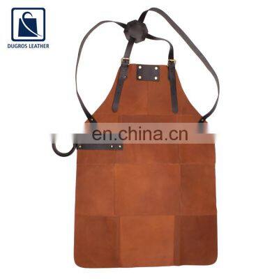 Product Description Wholesale Quantity Supplier of Best Quality Matching Stitching Cooking Genuine Leather Apron at Reliable Market Price We have gained vast industry experience in the field of manufacturing and supplying an extensive range of Leather Apron. These aprons are fabricated using the best quality raw materials and pure leathers and in adherence with the industry standards. Entire range of our products are well analyzed and checked by the quality experts, who have in-depth knowledge on their respective domain. We offer our range at most feasible rates. Features :Comfortable fittingDurableTear & wear resistanceWE CAN WORK FOR THE PRIVATE LABEL Specification Product NameApronMaterialGenuine LeatherFittingsAnthraciteDimension (HXL) in cm80 X 55 Cm DescriptionCooking ApronColors AvailableBrown, Congnac, Black, Grey, Tan, Olive Customize Etc. StitchingMatching Packing & ShippingAbout Us Dugros Leather India Pvt. Ltd., founded in 2006, is an ISO 9001:2015 certified and BSCI –compliant professional OEM/ODM manufacturer. We have been specialized in designing and manufacturing all kinds of genuine leather bags, wallets and accessories for over 15 years. We also have an in-house well equipped LWG certified tannery which processes raw skin to produce finished leather to cater our factories based on the customer’s requirement, thus keeping the quality of leather in control and offering very competitive prices. Other than leather, we also make bags in canvas, jute, nylon and PU. We have been cooperating with clients from Europe, North America, South America and Asia.Our 3 production units all located in Kolkata (India) with two of them in the leather hub of the city (Leather complex, “Bantalla”) along with an in-house tannery, with more than 500 professional and skilful workers, equipped with modern facilities and total production area of 10,000/sq. meters, our monthly capacity reaches 50,000 bags and 1,00,000 wallets.Over the past 15 years, due to the excellent quality, competitive price as well as fast customer service, Dugros has been well known as a reliable and capable supplier to many international group and brands. Our R&D department which is equipped with over 40 professional sample technicians that can create 200pcs new styles every month.Ever since our foundation, we have been focusing on strict quality control over the production to ensure the quality of our every delivery by implementing a ratio of 1QC/20 workers. Our leather/Hardware/Painting edge/Reinforcement/Lining have all passed eco-friendly tests by Intertek and Bureau Veritas.Reasonable prices, the best quality, and reliable service are the soul of Dugros. Trust us, we can work together to create a bright future. Certificates Our Services SAMPLE SERVICES We can replicate any design provided by you and as per your specimen sheet. After making the sample, we do prepare cost sheet and quote our best price based on the quantity. The lead time is 7 to 15 days, depending on the product. Sample prices charged will be refunded after we receive an order according to our MOQ. CUSTOMIZED SERVICES Customized logo can be printed. Sample orders are accepted. Quick response and fast delivery are guaranteed. Customers' designs are welcome. LOGO SERVICES Engraving Laser printing. Silk screen printing: used for simple logos. Colorful foil logos. Rubber sticker printing. UV printing (matte/glossy): used for special material printing. We have all these printing craft and can do as your requirement. AFTER-SALES SERVICES When you place an order with us, during production we will capture clear photos of your products so you can see them step by step. We can book container for you by our forwarder and calculate all kinds of costs during shipping and keep follow up of your goods. If our goods have any kind of problem or quality issue, you can contact us anytime and we will do our best to solve the issue. FAQ 1. Q. Can your factory make any leather goods? A. We have 15 years of expertise in producing leather men’s bag, ladies handbag, backpack, office bag, travel bag, wallets, credit card holders, passport covers, clutches, pouches, slings, key holders, Aprons, gloves, kitchen appliances etc. We also make bags in canvas, fabric, jute, PU. 2. Q. Are those products on your website all genuine leather? A. We primarily deal in genuine leather as we produce the leather ourselves in our in-house tannery. But we do also make goods out of canvas, jute, fabric and PU. 3. Q. What about your products, do they meet the European's environmental standards?A. We abide the EU regulations and meet the standards as we are an SA 8000, LWG Tanners, and ISO 9001:2015 - company. 4. Q. What payment method can you accept?A. PayPal, L/C, D/P, T/T, 30% ADVANCE PAYMENT payments for offline orders. 5. Q. What is your MOQ?A. Bags- 100-200 pcs per style per color. Wallets- 200-300 pcs style per color. Small accessories: 300-500 pcs per style per color. 6. Q. What about the lead time?A. 45-80 days depending on the product and quantity. 7. Q. How can I visit your factory? A. (a) OFFICE ADDRESS- 21E, Gorachand road Kolkata-700014 West Bengal, India. (b) FACTORY ADDRESS- zone no.8/plot 622 Kolkata leather complex Kolkata-743502 WestBengal, India.Get in Touch with Us