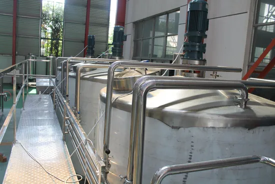 Sugar is one of the main components of fruit juice beverage. The process of sugar cane dissolved in water is called sugar dissolving operation. The syrup melting System generally contains sugar powder transportation, sugar powder dissolving, syrup sterilizing, syrup filtrating & cooling and syrup storage, etc. In some circumstances, it needs syrup desaeration. It equips with heating device, agitator. It has advantage of simple structure and convenient operation