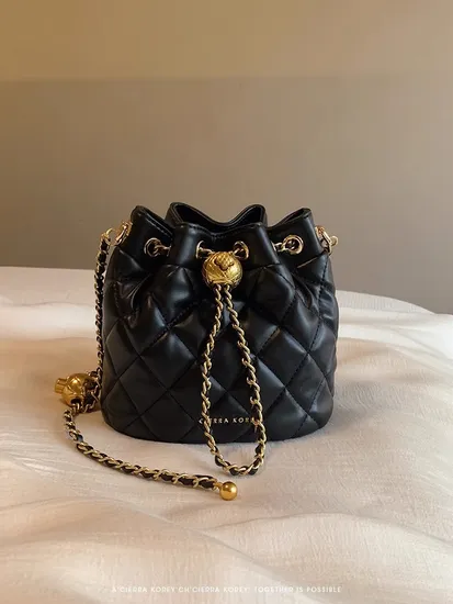 Bucket PU Diamond Chain Shoulder Crossbody Bag