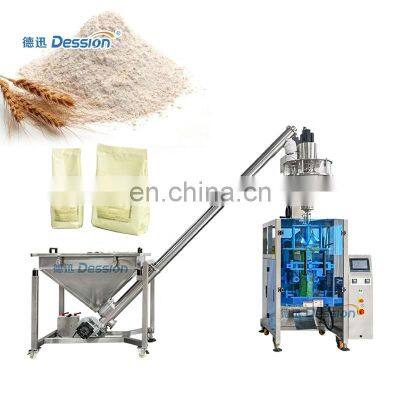 Automatic food packaging machine tea powder packing machine food powder filling machineMachine IntroductionPackaging ApplicationThis machine is suitable for the food, medicine, chemical industry, cosmetics industry of powder of measurement packing.Such as Instant coffee, milk tea, tea powder, spice powder, milk powder, protein powder, energy drinks, etc.Packing EffectThis machine can provide back-seal packing.It can be upgraded to add the bag with hanging holes, bag with easy tear, gusseted bag and quad sealed bag effect according to the needsMachine Structure and ParametersModelDS-320DZDS-420DZDS-520DZDS-620DZDS-720DZFilm WidthMax.320mmMax.420mmMax.520mmMax.620mmMax.720mmFilling range150~800ml150~1500ml150~2000ml150~4000ml150~400mlBag sizeL:80~240mmW:50~150mmL:80~300mmW:60~200mmL:80~350mmW:80~250mmL:150~350mmW:200~350mmL:100~450mmW:100~350mmPacking speed5~70bags/min5~60bags/min10~50bags/min5~50bags/min10~40bags/minOptional deviceAngle of plug-in device, Linking bags device, Gas-filling device, Punching deviceMachine Characteristic1)Imported PLC full computer control system, color touch screen, easy to operate, intuitive and efficient.2)Impoted servo film transport system, imported color code sensor, accurate positioning, excellent overall performance and beautiful packaging.3)A variety of automatic alarm protection functions to minimize losser.4)Flat cutting, pattern cutting, linking cutting can be realized by changing the tools;easy operation with smooth bags.5)Bag-making equipment can be changed according to specific requirement of customers and products.6)Optional English or other languages screen display, easy and simple operation. Both packaging speed and bag length can be set with one click.7)All machines have CE certification and ROSH certificate.Details ImagesMachine WorkflowThis machine is easy to operate. Just set the parameters on the screen, and then you can start the machine. Put the product in the hopper, the machine will automatically pull the film, the bag is formed, sealed, and finally the bag is cut.Easy Control Touch ScreenLanguage: Standard English and Chinese. Any language can be customized.PLC: Imported PLC microcomputer with interface and frequency control enables bag parameter setting more convenient and easier.Screw FeederPull the powder into the hopper, the screw inside will convey the powder to screw measuring machine.Screw Measuring MachineAutomatically measure the volume of the powder and fill it with high precision. Bag Former#304 stainless steel bag former is for shaping the film into a bag.Different bag width needs different bag former.Sealing and Cutting DeviceThe wheels will pull the film to this cutting device, which will create the top and bottom of the bags.Related ProductsWhy Choose UsVR1. Professional and Strong TeamDession has a professional team that can provide customers with various packaging solutions. After fully understanding the customer's needs, we provide the most suitable packaging solution to the customer. Then start the production of the machine. We have a strong production and processing capacity, from the customized processing of accessories to the assembly and debugging ofthe machine. Finally, it is packaged and shipped, and it only takes a week to complete.2. Excellent transportation serviceAccording to the needs of customers, we can provide sea transportation, air transportation, and land transportation services, so that you can get the machine as soon as possible. Provide door-to-door transportation services.3. Timely and effective after-sales serviceChoosing us is not only buying a machine, but also our professional and timely service. 1. When the machine is delivered, we will attach a video of the installation and operation of the machine, so that you can use the machine quickly. 2. All electrical appliances of our machines have a one-year warranty, and we will replace them if they fail. 3. When your machine fails, we will have professional engineers to provide professional online after-sales service to help you solve the problem. 4. If the problem cannot be solved online, we will arrange an engineer to repair it on site within a week.Buyer FeedbackWe have 8 years of experience in foreign trade and export, and now our customers have spread to 90 countries all over the world. With our high-quality machines and professional services, we have won unanimous praise from our customers.Company ProfileDession a leading manufacturer of Packaging machine and supporting facilities, which has successfully developed more than 80 kinds of packaging machines. Dession Packaging Machine has widely applied for different fields throughout the world, such as food/ industrial food, medicines, hotel supplies, disposable goods, rubber goods, daily appliances, hardware fittings, sporting goods, toys etc. Dession has more than 8000 square meters of production plants, 5 production workshops and a parts processing workshop, including small vertical machine production workshops, vertical machine production workshops, pillow machine production workshops, cartoning machine production workshop and filling machine production workshop.FAQQ1:Do you have manual or operation video for us to know more about the machine? Yes, not only manual or operation video, 3D drawing also available to make as per your design,also the video we can make of testing the material from our packaging machine if your packing goods easier for us to find from our local market. Q2:How can I trust you for the first time business ?Please note our above business license and certificate. And if you don't trust us, then we can use trade assurance service, guarantee your money, and guarantee your machine's on-time delivery and machine quality.Q3:Is engineer available to serve oversea?Yes, but the travel fee is paid by you. So actually to save your cost, we will send you a video of full details machine installation and assist you till the end.Q4:How can we make sure about the machine quality af