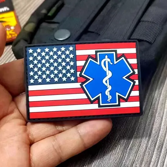 this pvc patch material soft pvc,logo in 3D and color enamel,backside with velcro,usually thickness is 4mm.